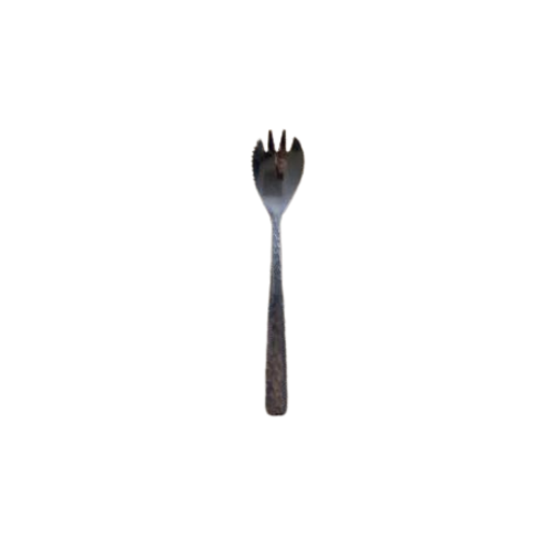 Cette cuillère est un mixte entre une cuillère, un couteau et une fourchette, idéal pour vos desserts les plus complexes. Son design avec son effet martelé se mariera parfaitement avec notre ensemble de couvert martelé, disponible avec la gamme prestige.