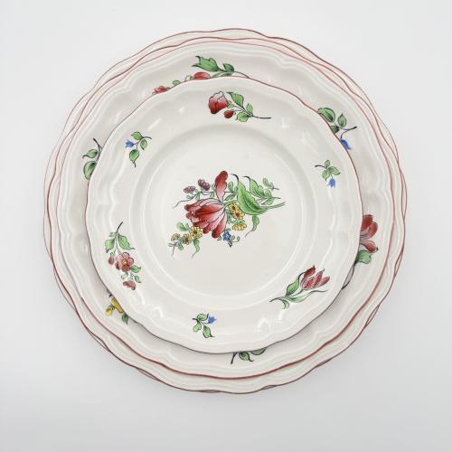 Nous vous proposons à la location un Magnifique service Alsacien / Lorrain, notre petite assiette Lunéville de 18,5 cm sera parfaite pour sublimer vos présentations culinaires. Inspirée d’un style traditionnel et authentique, elle apporte une touche rétro et raffinée à vos tables. Idéale pour les entrées, fromages, desserts ou petits plats, cette assiette incarne l’art de recevoir à la française avec charme et délicatesse.