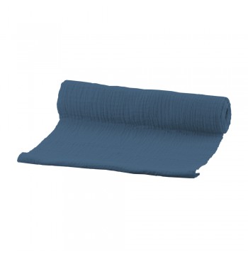 Chemin de table coton gaufré Bleu denim – 26 x 300 cm