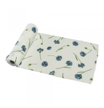 Chemin de table coton gaufré Bleuets – 26 x 300 cm